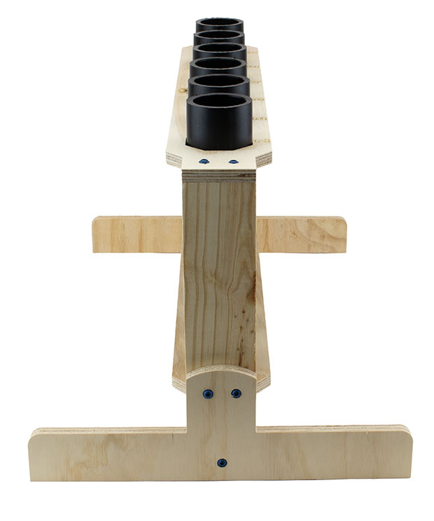 6-Shot OctoRack. Tubes are not included. For use with HDPE consumer mortar tubes (DR11 12", DR11 15", DR9 1.81"). The safest and more affordable racks on the planet. This rack is the ...Read Morelightest 6-shot rack on the market today and one of the most durable wooden rack you'll find. Each tube has it's own hole that creates an incredible amount of safety just in case of mis-fire. The reason for the 8-sided hole is to reduce the touch points on the rack. This unique design provides energy displacement due to shell failure. Each hole is machined on a CNC router so every rack is perfectly made. The frame of the rack is made from the best Southern Yellow Pine (prime #1). Our OctoRacks have virtually no cosmetic flaws and very little knots. The bottom rail has break points in which should not affect or have very little affect on the nearby tubes in case of failure. This rack also features another industry-first: replaceable parts. If a part of the rack breaks you can easily repair the rack. No other rack company offers replaceable parts (we hope you never need to order them). At this price point you will not find a safer and better built rack. Be a part of the rack revolution! We highly recommend that all consumer racks be at least 150ft away and perpendicular to the audience.